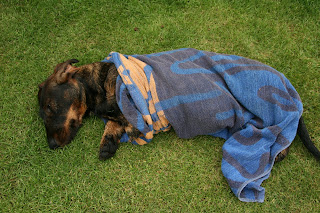 Bickel zit in de pubertijd,daarom hadden wij besloten om hem aan de riem te houden.Het is een lange riem,maar dat hield hem niet tegen om er een geweldige dag van te maken. Met het schuim op de bek en de Noordzee op de achtergrond kregen wij het gevoel dat hij het erg naar z,n zin had.Na een snoepje ging de riem af en hij ging met een noodgang iedere teckel goede dag zeggen.